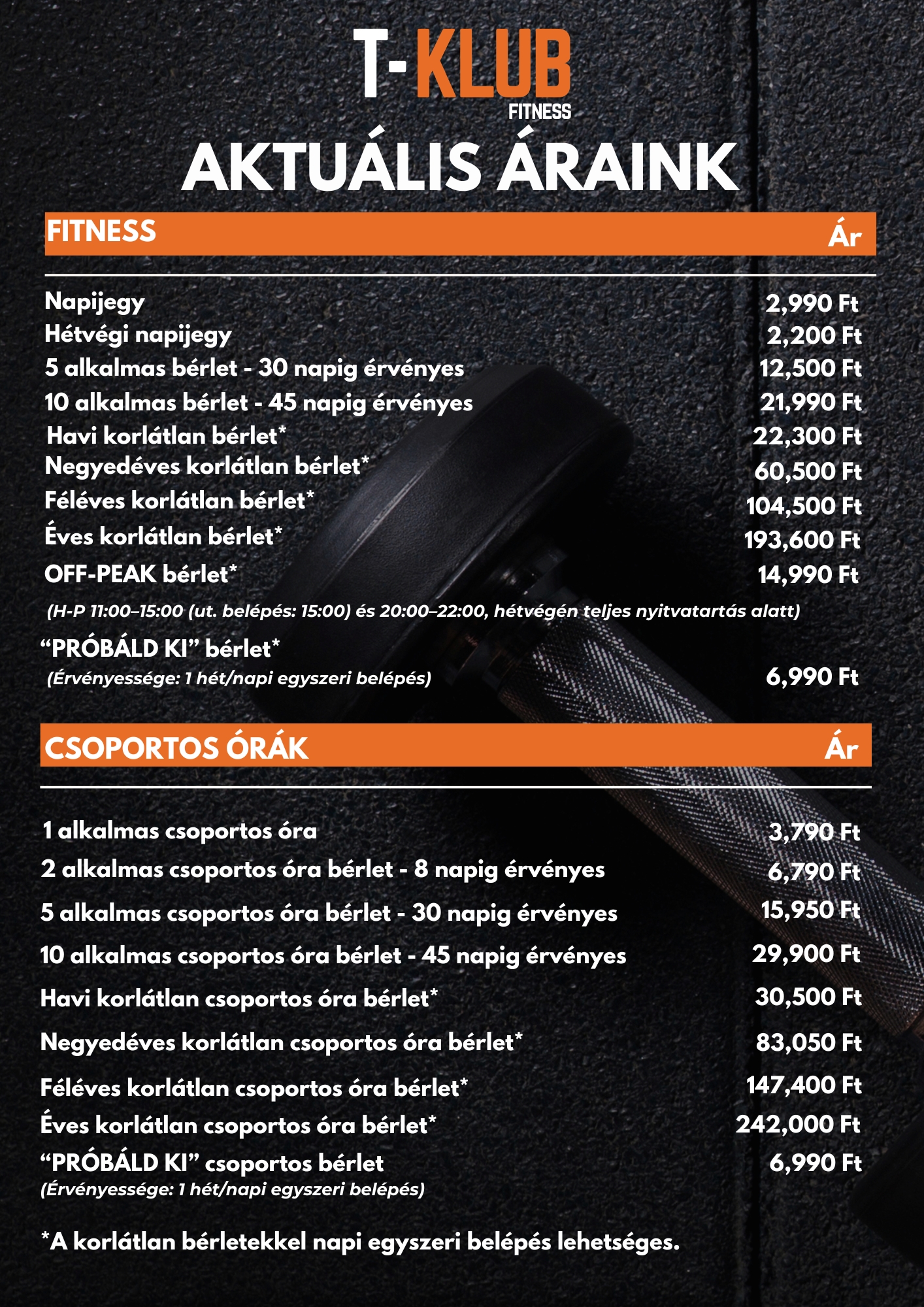 - Kérjük vendégeinket, hogy az árakról érdeklődjenek személyi edzőinknél. A személyi edzés árai edzőnként változhatnak.